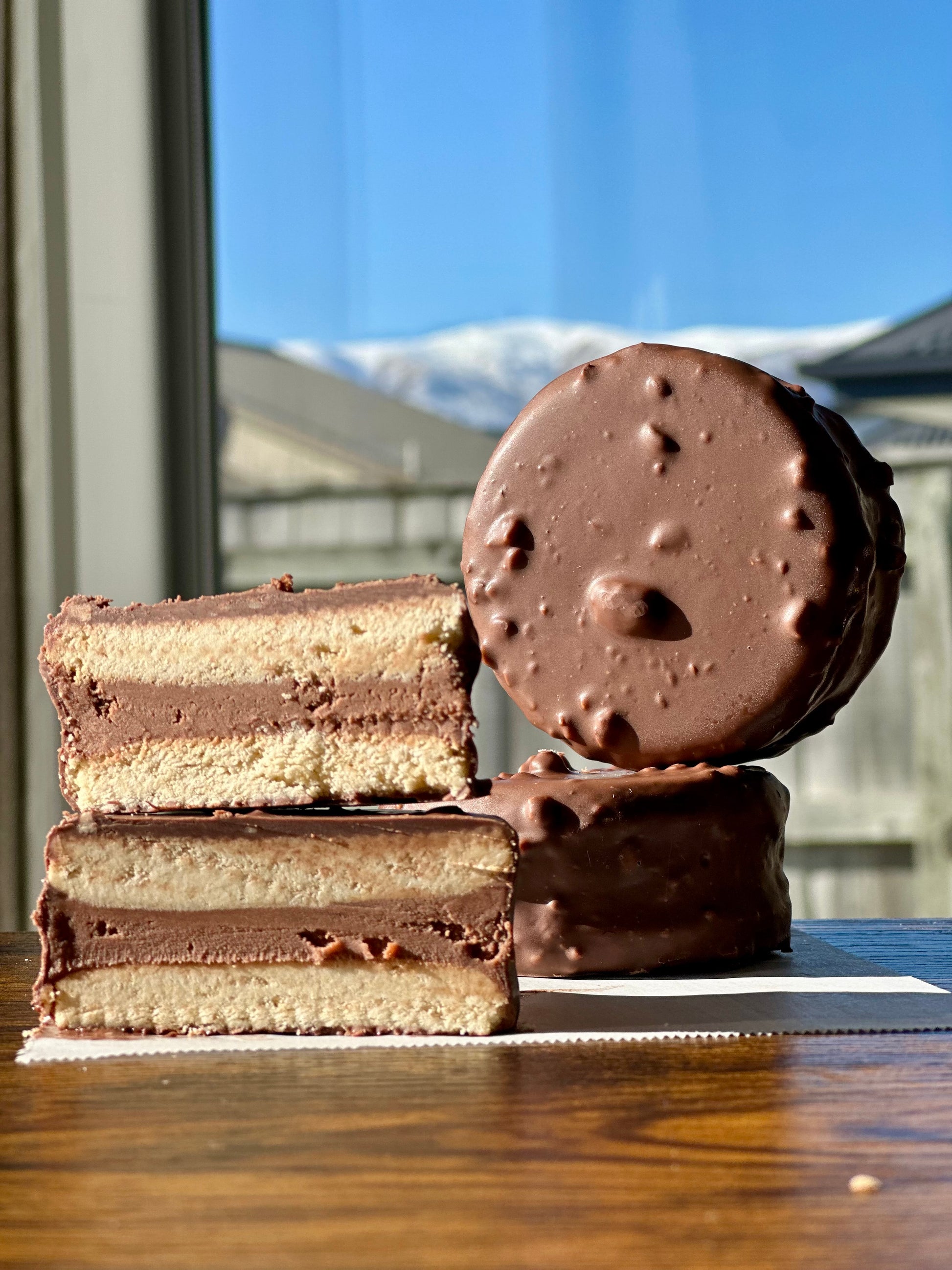 Vanilla cookie, Nutella ganache, dark chocolate, hazelnuts